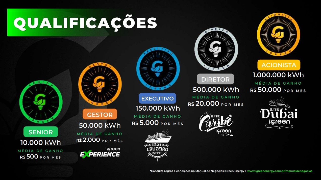 O plano de carreira da iGreen Energy é projetado para reconhecer e recompensar o esforço e o desempenho dos nossos licenciados. À medida que você cresce na empresa e atinge novos níveis, você pode receber prêmios e comissões maiores.