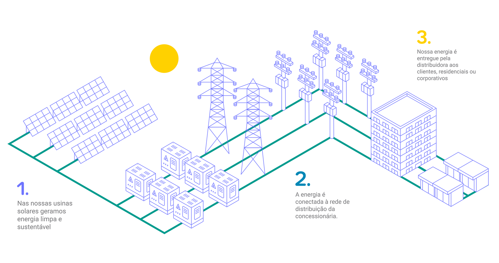 O desconto não se aplica a taxas obrigatórias (PIS, COFINS E ICMS). O desconto é aplicado sobre o consumo mensal de energia solar.