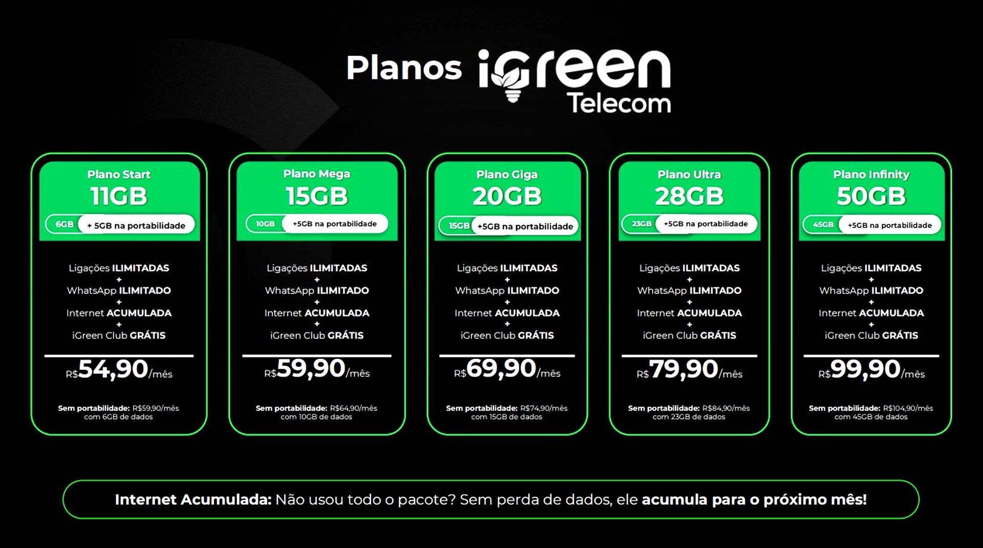 A operadora permite mudar de plano (do mais caro para o mais barato) e acumular internet para o mês seguinte.